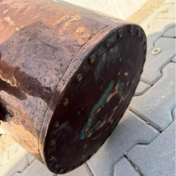 Prachtige, zware antieke emmer van rood koper. De emmer heeft een diameter van 41 cm en vertoont mooie gebruikssporen die getuigen van zijn leeftijd. Een uniek decoratief object of een bijzondere toevoeging aan uw collectie. Bekijk de foto's voor een goede indruk van de staat.