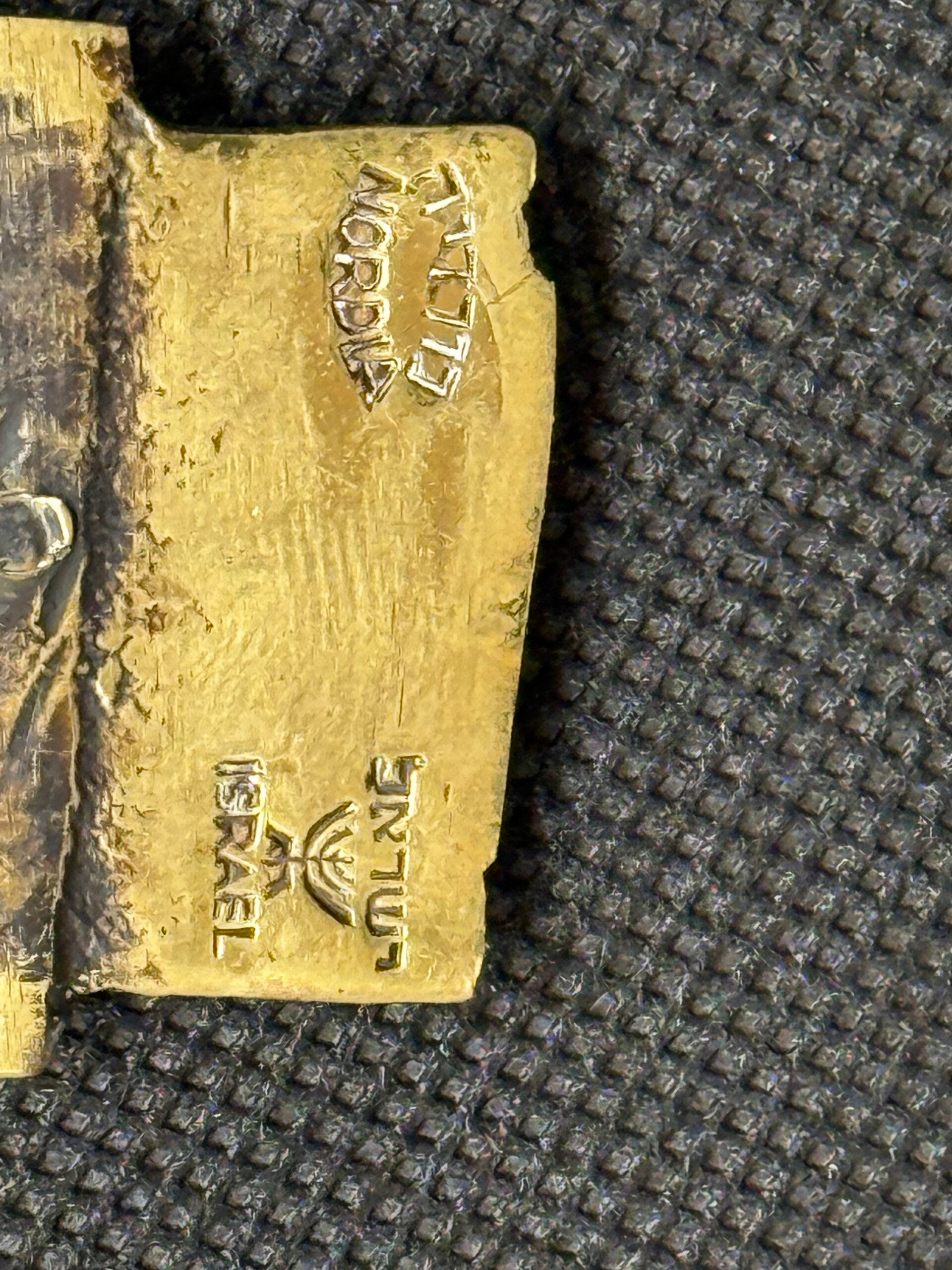 Een vintage briefopener van Nordia Israel, vervaardigd uit messing. Dit unieke item heeft een verborgen compartiment, wat het een bijzonder verzamelobject maakt. Het is een mooi decoratief stuk en een functioneel item voor het openen van brieven. De briefopener is in goede staat, gezien de leeftijd.